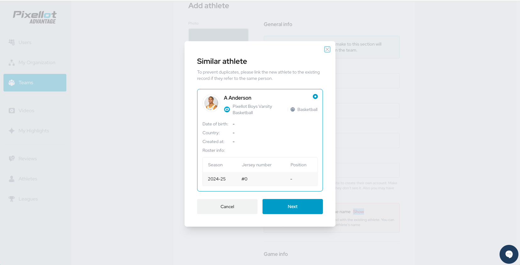 3) If user is a returning athlete, the system should recognize the player and ask to link seasons.