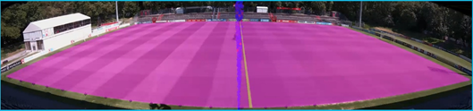The Main Image shows the Field Region highlighted in pink. Verify that the marked Field Region corresponds with the sideline markings on the field and that the midline marker corresponds with the midline of the field.