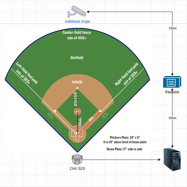 The following schematic diagram shows the setup of the Mobility DoublePlay Multi Angle Baseball system.